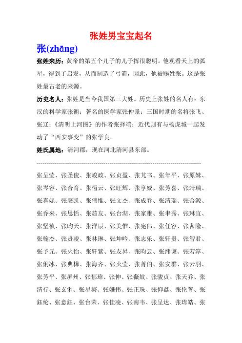姓氏不仅是婴儿身份的象征,也是命名时不可忽视的因素。结合张姓的意思给宝宝取名,既能体现家庭渊源,又能体现宝宝独特的个性。以下是张明宝宝的一些名字: