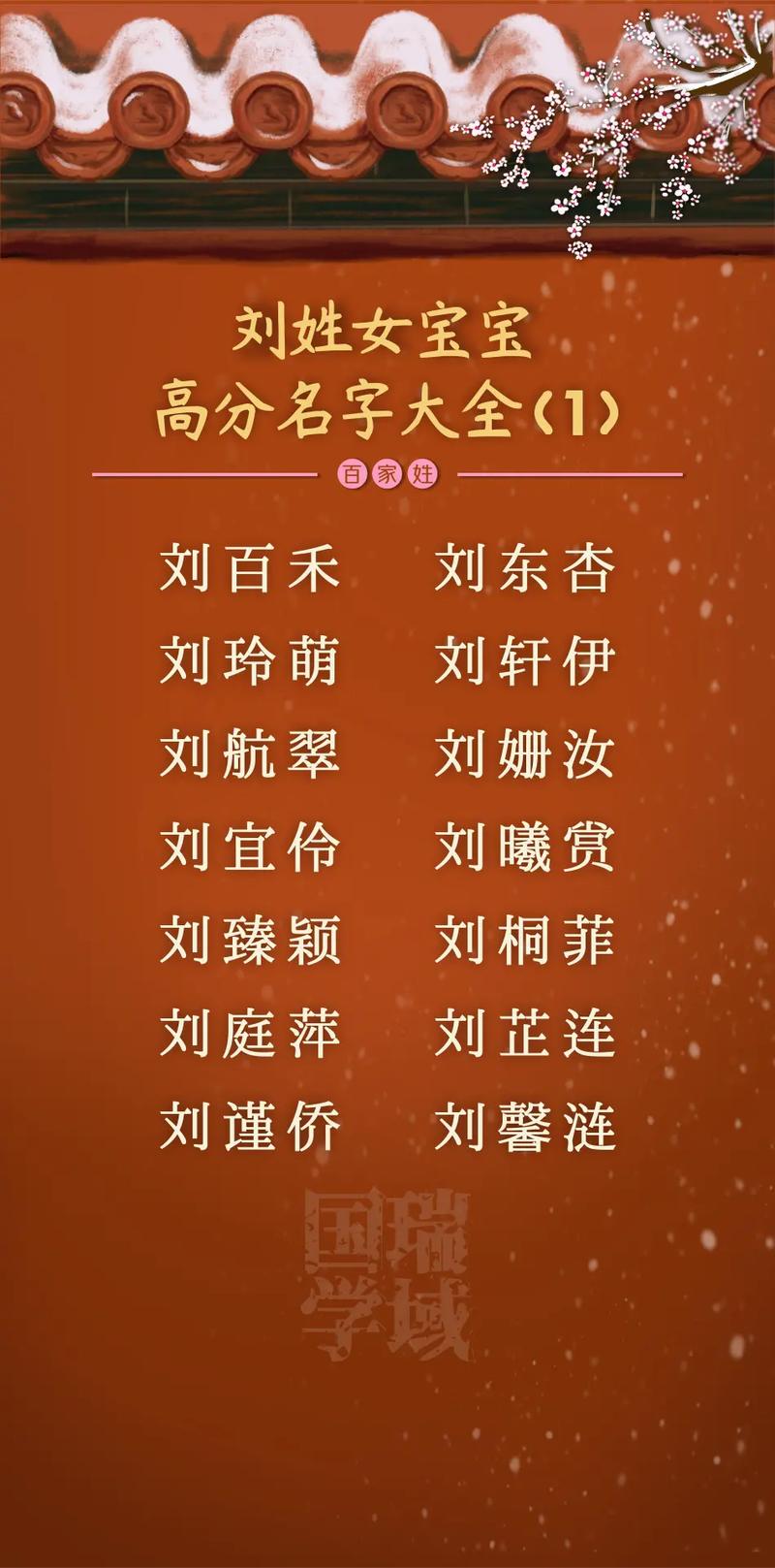 刘姓女孩的名字是100分刘方媛(100分).刘翰瑶(100分).刘慧婷(100分).