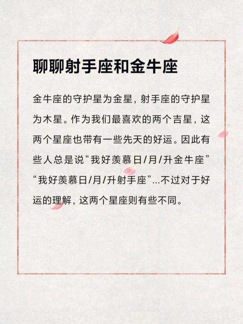 情感关系稳定射手座上升星座金牛座的人通常在情感关系中表现出稳定和忠诚。金牛座的人关注情感的深度和稳定,手座的人则充满热情和活力。这种组合使他们在情感关系中保持稳定和持久。