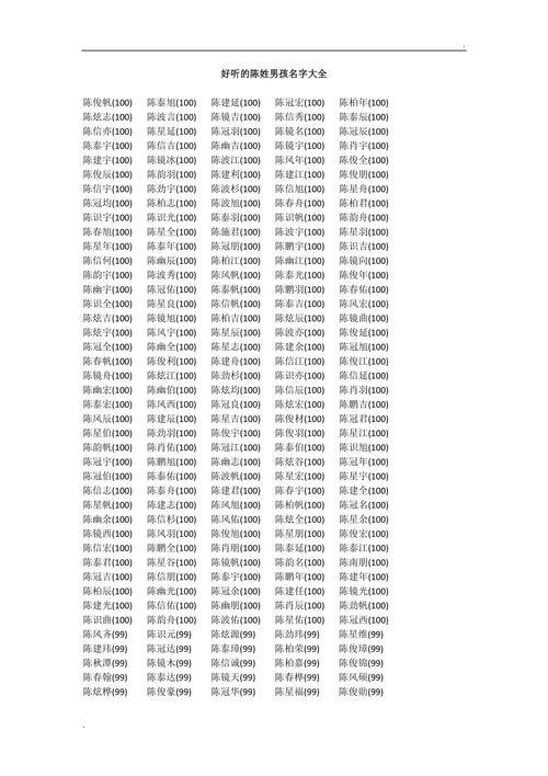 为您的新成员寻找一个既好听又吉祥的名字吗?不妨考虑以下精心挑选的陈氏宝宝名字,涵盖了传统美德、自然意象和美好祝愿。