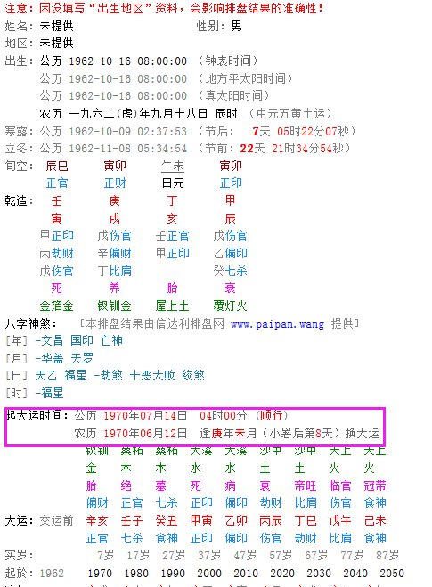 出生日期:(公历)1985年10月20日11:00,五行火旺缺金;日主天干为水,冬天出生;必须有木头帮助,但避免火太多。