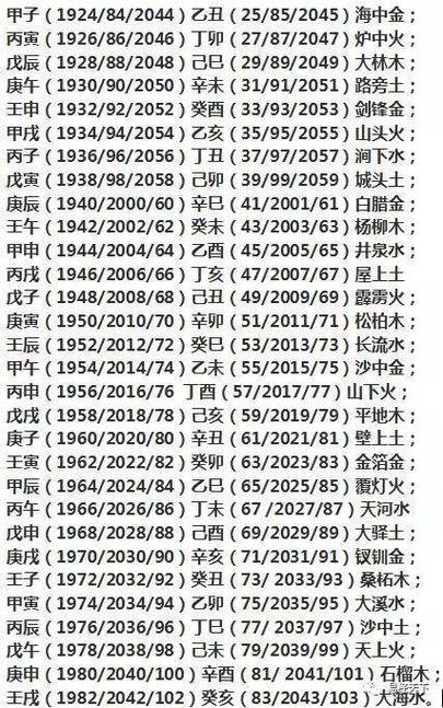 以上表例为1982、1983年出生的人是最后一句话,但并不意味着这两年出生的人都是水命,只是年命纳音就是大海水。至于你的生活,一种方法是查万年历,找出你出生的那一天,看看天干的属性。甲乙是木丙丁,属于火戊己,属于土庚辛,属于金。