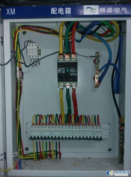 配电箱前必须有一个总开关,总开关后面的线应该横截面粗,因为工业用电量很大,一般采用380伏三相电,用的电表也是三相四线,也就是说进线是四条,三条火线,一条零线,三条火线出来,直接接入机器,比两相电复杂得多。