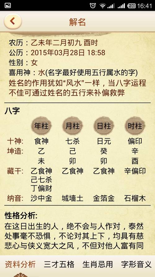 传统文化中,命名是一项关系到一个人命运和终身发展的至关重要的任务。生日八字是计算个人命理学的重要依据。通过分析八字五行之间的关系,可以为命名提供科学指导。