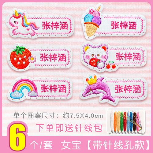 可先用水溶笔在布上写上要绣的名字,再用针线沿笔画绣,可以用简单的十字绣。