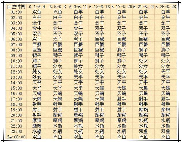 上半年的星座包括水瓶座、双鱼座、白羊座、金牛座、双子座和巨蟹座,从1月20日到2月18日,从2月19日到3月20日,从3月21日到4月19日,从4月20日到5月20日,从5月21日到6月21日。