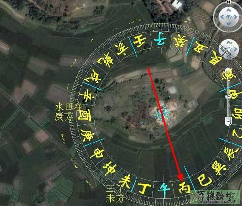 房子背面的座位圆0度,向180度,即正子午向,座位向西略偏,向东略偏,即子午兼仁丙。
