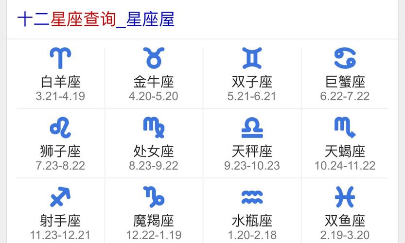 以上是12星座日期查询表,对照表格就可以知道自己的星座了。