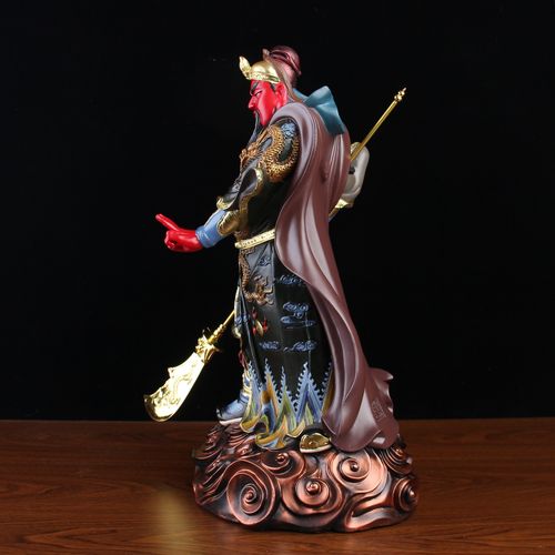 金盔上的四条龙相互呼应,所以有九条龙,意思是“九五之尊”的意思,相得益彰,美不胜收。关羽象征着忠诚、正义、信仰、智慧、仁慈和勇气。他不仅是武术之神,也是龙王的转世。因此,除了招财,九龙关公还有驱邪纳祥的意义。