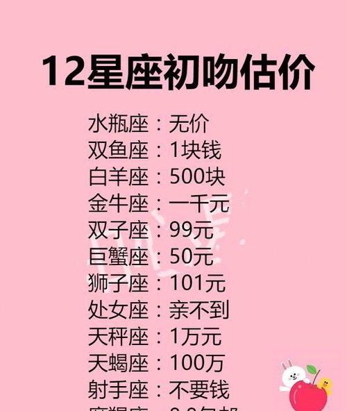 金牛座:稳定的初吻金牛座是一个注重现实的星座,他们注重稳定和长期的关系,所以初吻往往更平静。与那些充满激情的白羊座不同,金牛座的初吻可能发生在更私人的场合,比如两个人住的房间或一个安静的夜晚。初吻的方式也相对温和,不太强烈,但很有感染力,可以让一个人感到真诚和温暖的爱。