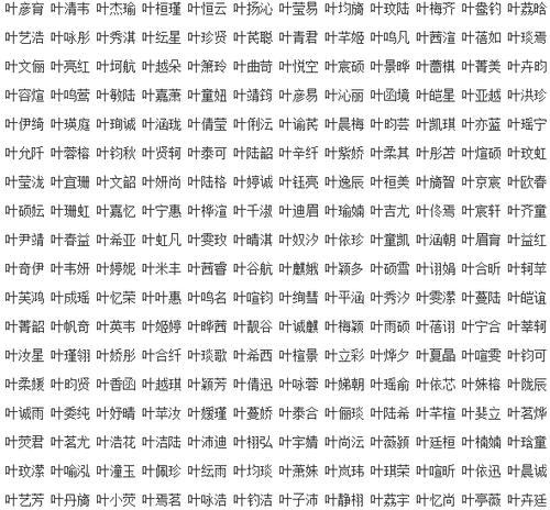 我还整理了一些名字技巧和例子,如何给姓叶的女孩取一个优雅、大气、有意义的名字。有需要的朋友可以作为参考,具体如下: