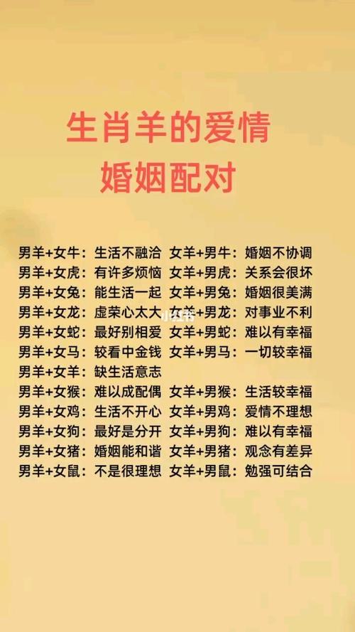 中年羊女性事业有成,生活富裕,家庭和睦。然而,他们的婚姻可能会遇到曲折,夫妻关系因性格不合或婚外情而破裂。此时,我们需要保持冷静和理性,妥善处理婚姻问题。