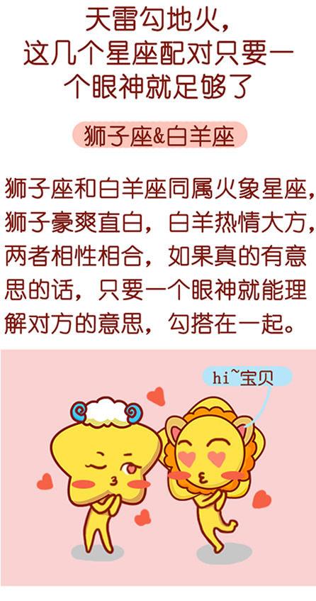 在白羊座女人眼里,狮子座男人的霸道和力量是一种魅力。在狮子座男人眼里,白羊座女人的热情和冲动是活力和激情。他们互补,互相包容,在爱情中互相支持,共同成长。