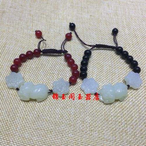 和田玉手镯配生肖吊坠和田玉手镯配生肖吊坠是很多人的选择,相互搭配会产生意想不到的效果。比如你的生肖是马,可以戴和田玉马吊坠配和田玉手镯。这种搭配不仅能展现你的个性,还能体现你的生肖特点。
