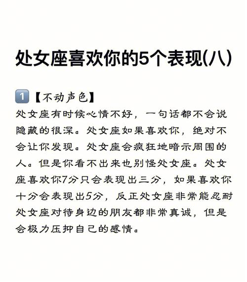 处女座是一个特别专一的人。如果他们把你当成生活中最亲密的朋友,他们可以和你分享生活中的一切,甚至把你当成生活中的依靠。处女座自然不在乎一些事情。