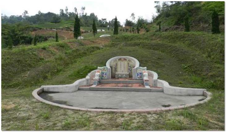 坟墓比较低矮的,房子比较高大。就好比一个小孩,前面站了高大的大人。