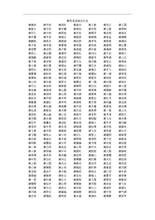“康”一词在传统文化中具有重要意义。它来自《周易》,名为“大动物”,意为“利亨”和“主吉”。因此,用“康”这个词来命名婴儿不仅意味着好运,而且继承了中华传统文化的精髓。